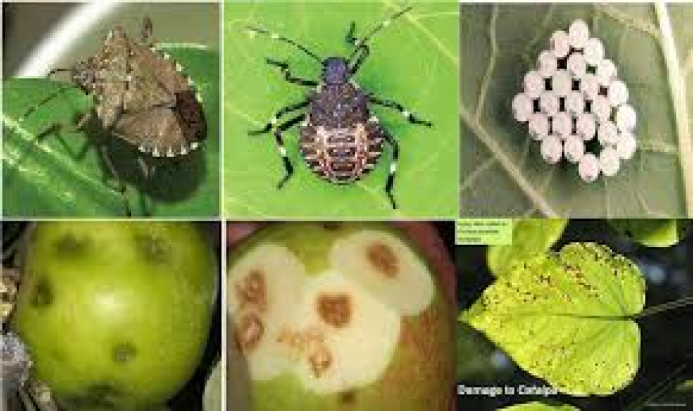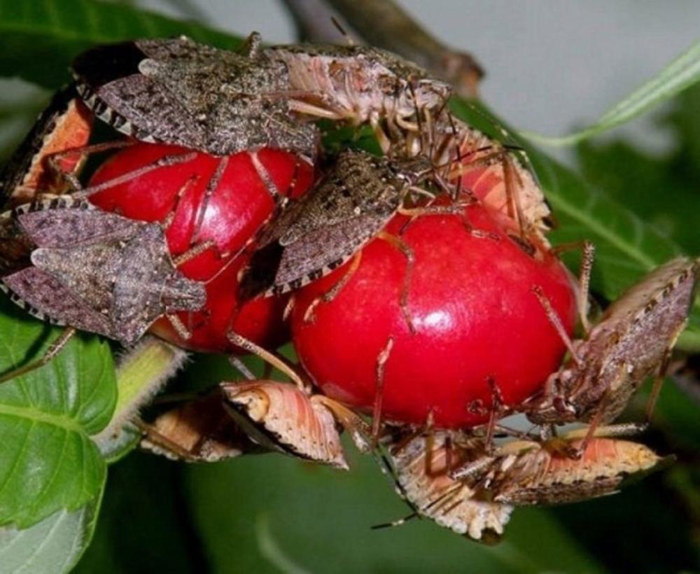 Коричнево - мраморный клоп агрессивный многоядный вредитель, питается на многих видах растений - овощных, плодовых, декоративных культурах, винограде, сое и др. Клоп выделяет через протоки жидкость с очень неприятным запахом, высасывая соки, делает проколы на листьях и плодах. В местах уколов образуются некротические пятна, через которые проникают возбудители болезней. Плоды теряют товарный вид, при уколах в плодоножку – осыпаются , загнивают, при повреждении винограда теряются качества виноматериала . В условиях нашего края клоп дает 2-3 поколения в год.