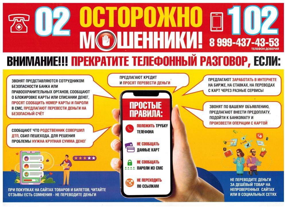 Сотрудники банков и полиции НИКОГДА не спрашивают реквизиты карты, пароли из CMC, персональные данные и не просят совершать переводы с вашей карты