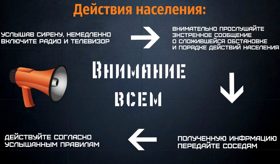 Звучание сирен является предупредительным сигналом гражданской обороны об опасности, который означает "ВНИМАНИЕ ВСЕМ!". По этому сигналу включите телевизионные приемники на каналы телевидения «Россия 1 - Кубань» или «Кубань 24», приемники проводного вещания на первую программу «Радио России», а приемники эфирного вещания на каналы «Первое радио Кубани» или «Радио России» и прослушайте специальное сообщение.